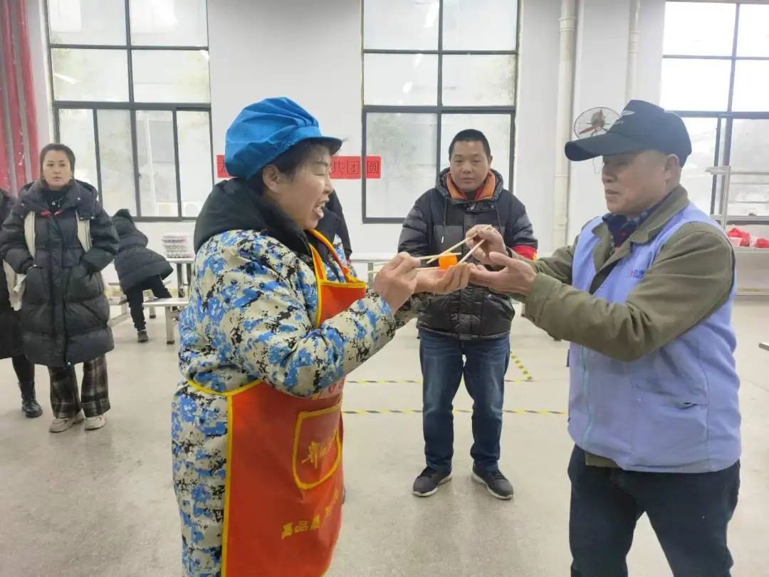 除了包汤圆外,现场还设置了有趣的夹“汤圆”游戏。游戏规则简单易懂:参赛者需用筷子在限定时间内从盆中夹出汤圆并完成接力,夹得越多,得分越高。这个游戏不仅考验了大家的技巧、耐心和团队协作能力,更增添了活动的趣味性和互动性。员工们纷纷排队参与,有的轻松应对,有的则笑得前仰后合,大家都沉浸在节日的欢乐氛围中。