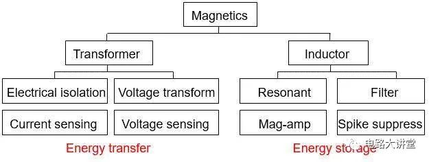 磁性元件主要分为变压器和电感。变压器的主要作用有隔离、电压变换等,其核心就是能量转移。电感的主要作用是谐振、滤波等,其核心是能量储存。