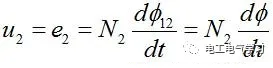只要涉及到电磁,你不可避免地要应用到法拉第电磁感应定律,在变压器初级加上一个电压u1,根据电磁感应定律,初级线圈感应电压如下表达式,即感应电动势e1等于输入电压u1: